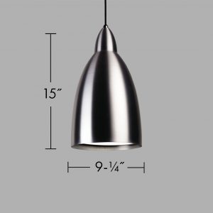 Spun-aluminum or copper shade with brushed aluminum finial. 5" diam. x 1/2" deep canopy. For standard ceiling junction box mounting. -