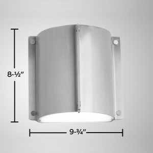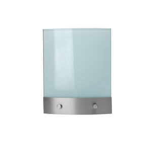 Aluminum shade with white opal acrylic bottom lens and brushed aluminum buttons. For standard wall junction box mounting. -